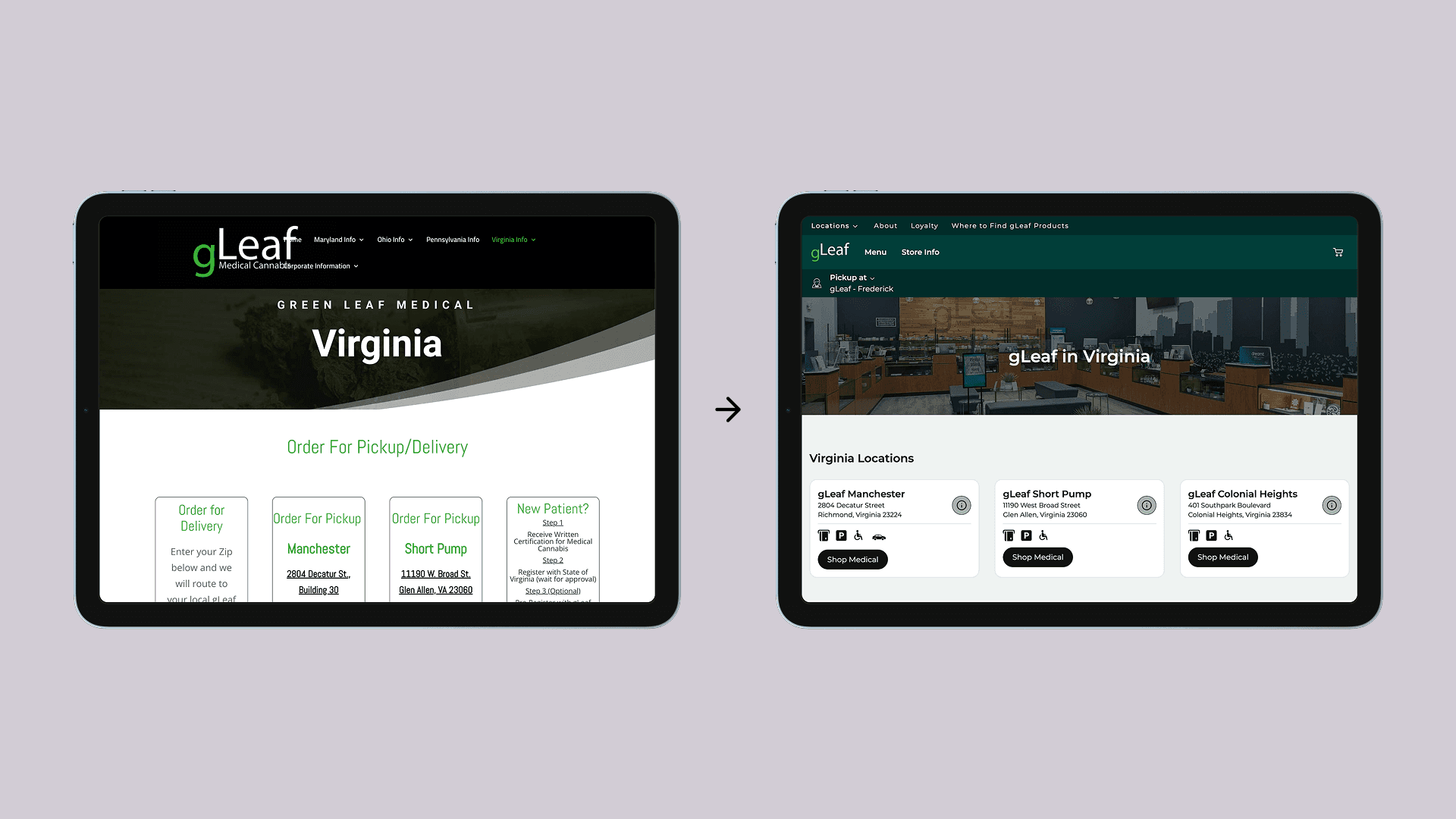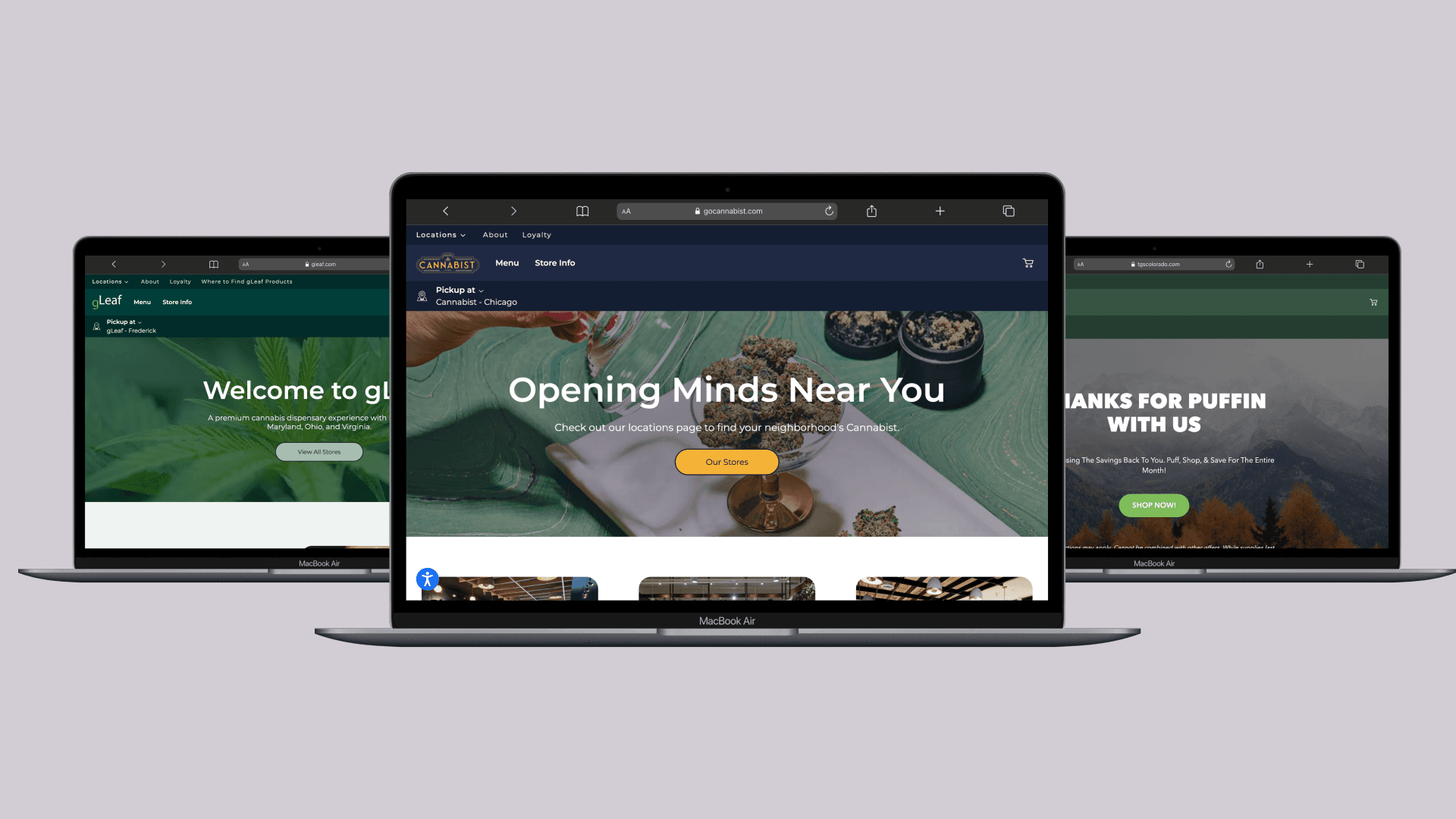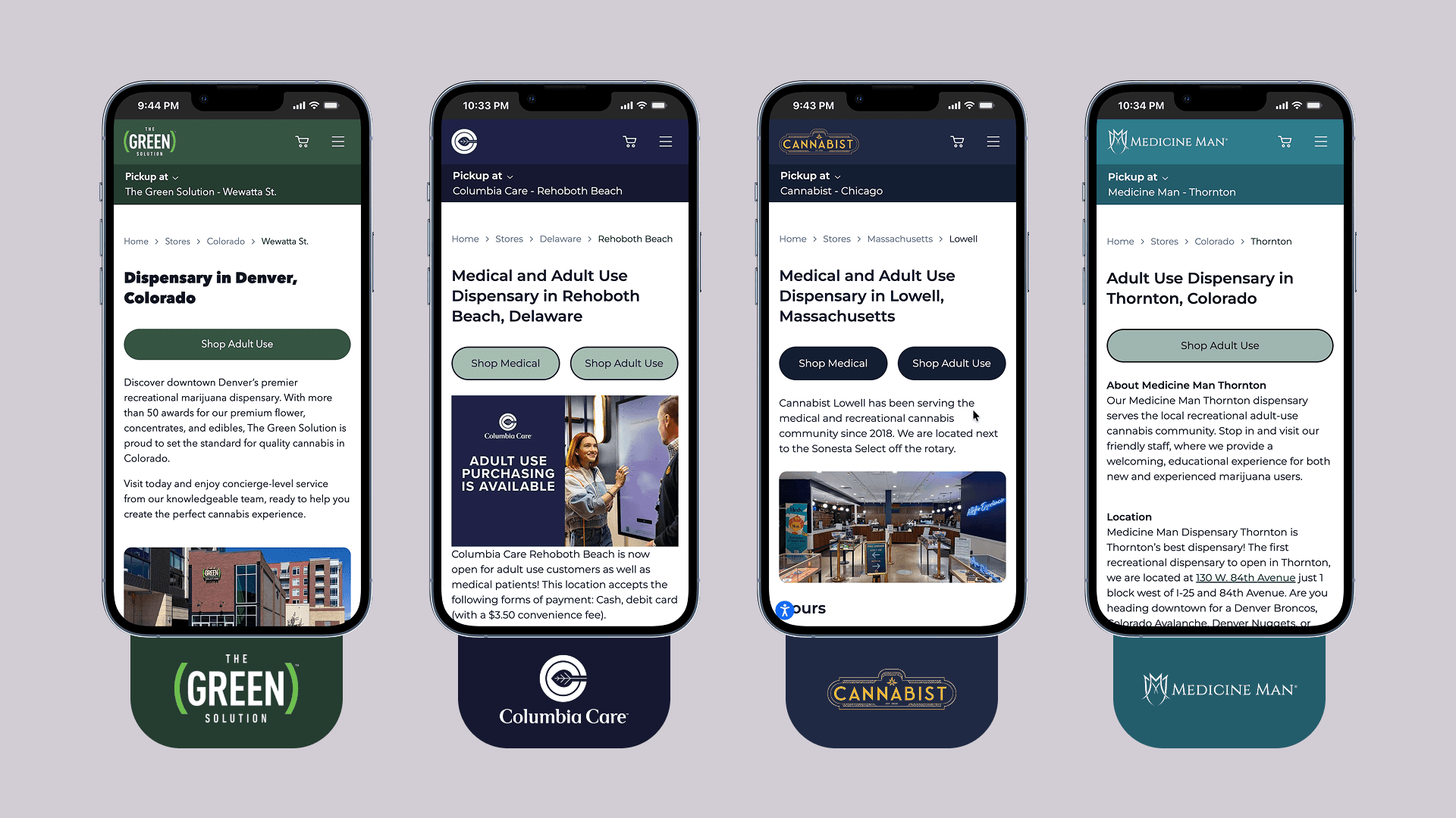 Some locations serve medical patients, some recreational customers, some both. This affected what content, wording, and imagery could appear on each site.