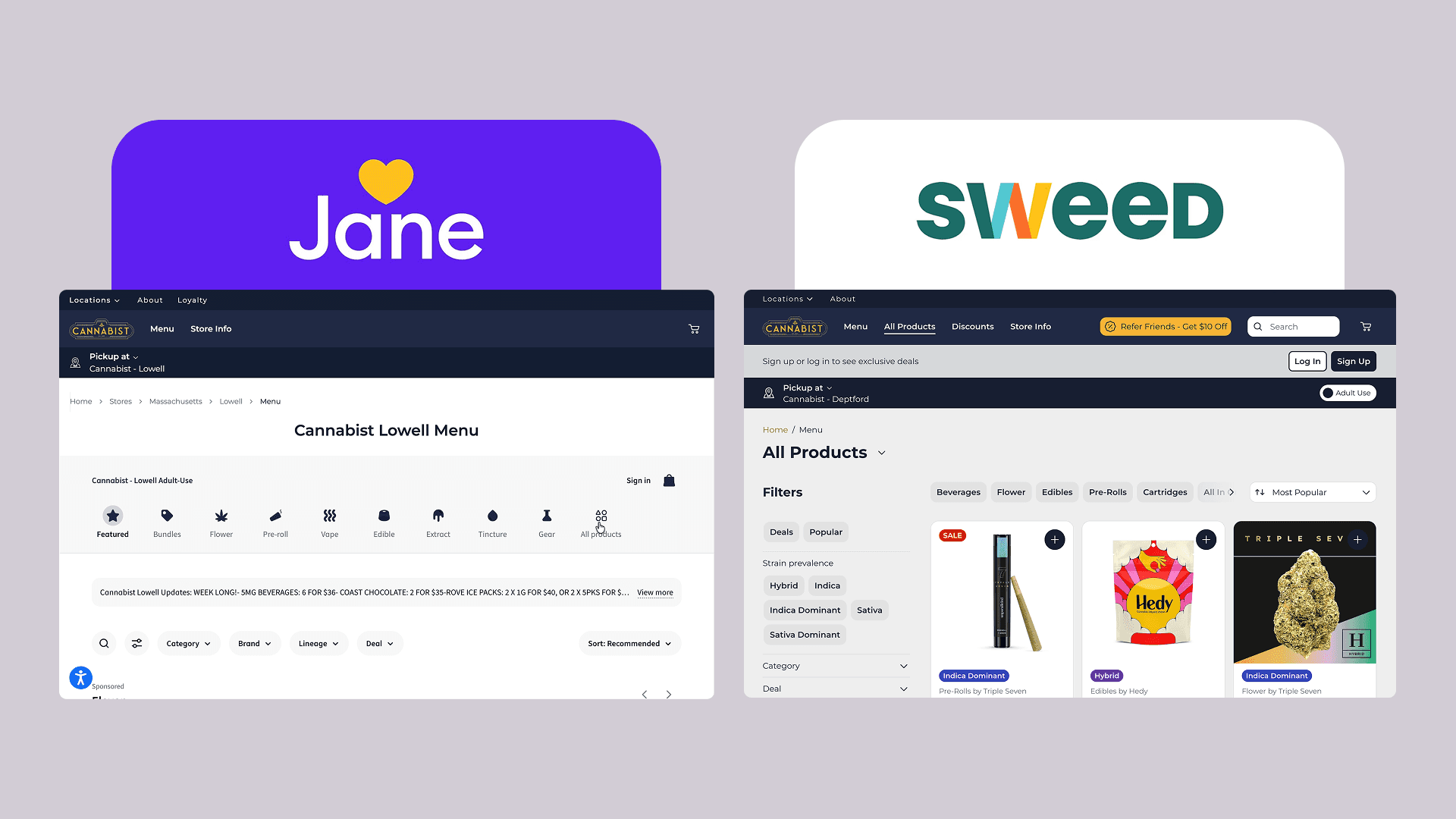 For iHeartJane's iframe menus, I had limited control, so I focused on making the surrounding experience feel seamless. For Dutchie and Sweed's reverse proxy setups, I had more control but had to match Sweed's native navigation to our pattern.